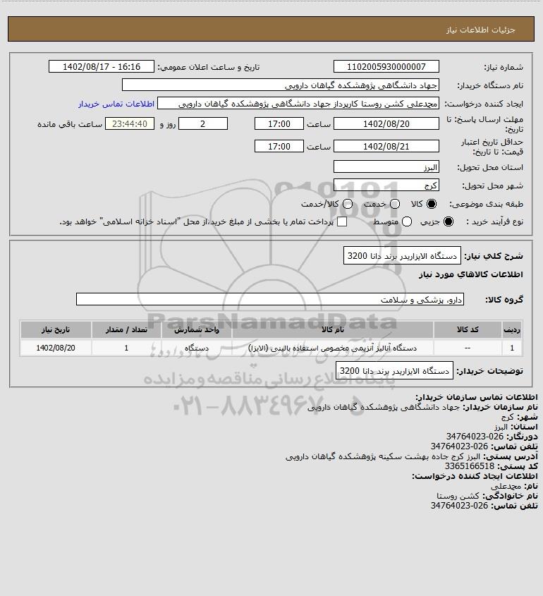 شرح کلی نیاز: دستگاه الایزاریدر برند دانا 3200