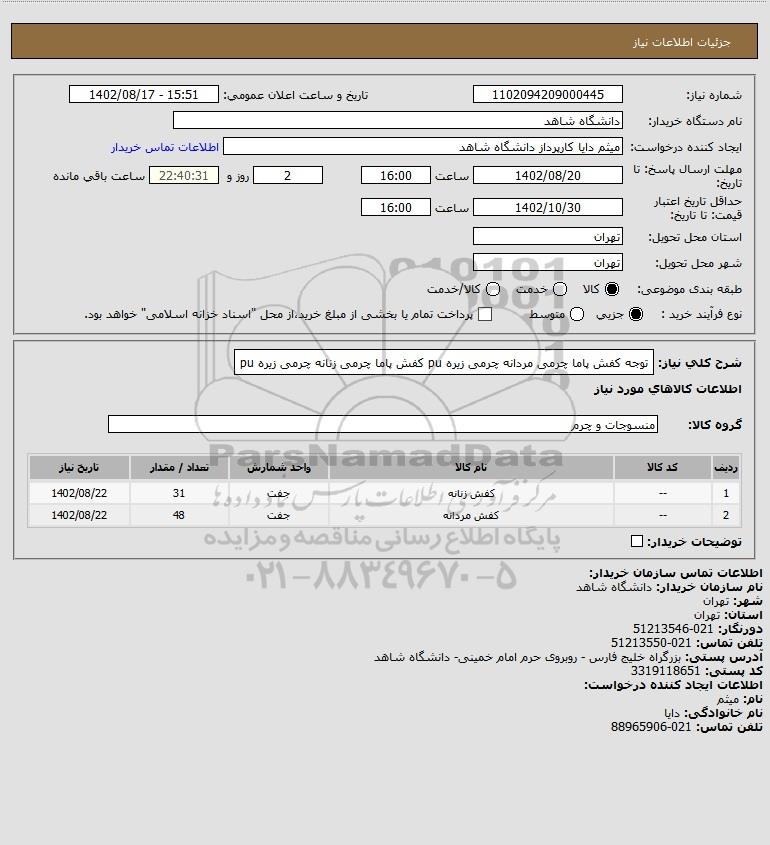 | 2 | -- | کفش مردانه | جفت | 48 | 1402/08/22 |