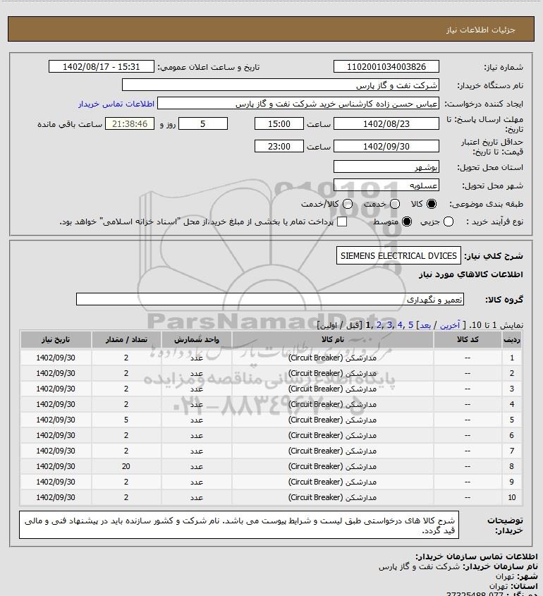 استعلام SIEMENS ELECTRICAL DVICES, استعلام SIEMENS ELECTRICAL DVICES
