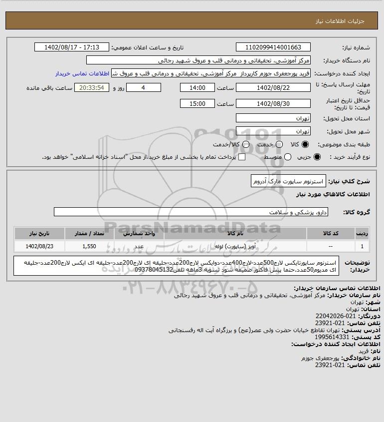 نام دستگاه خریدار:مرکز آموزشی، تحقیقاتی و درمانی قلب و عروق شهید رجائی
