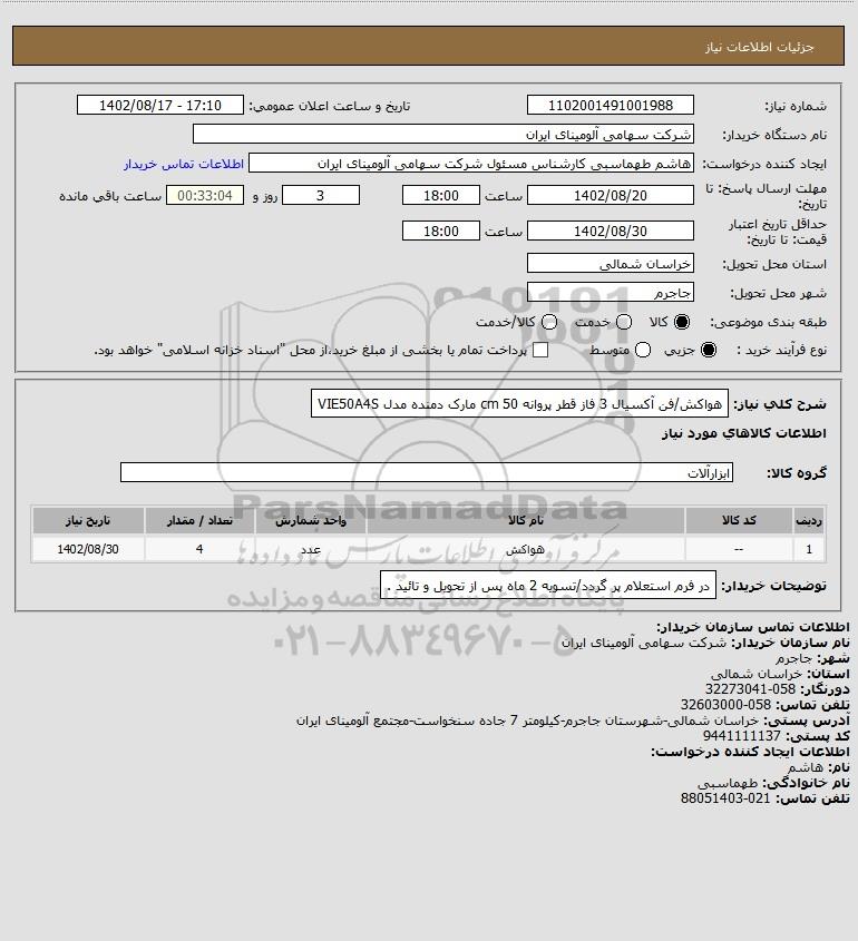نام دستگاه خریدار:شرکت سهامی آلومینای ایران