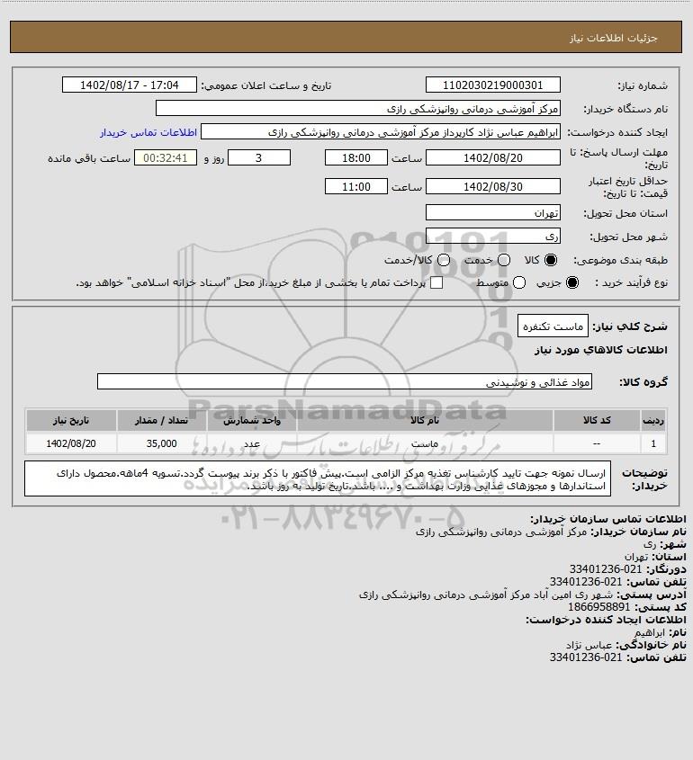| 1 | -- | ماست | عدد | 35,000 | 1402/08/20 |