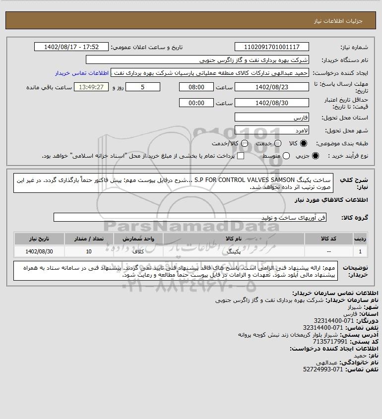شرح کلی نیاز: ساخت پکینگ S.P FOR CONTROL VALVES SAMSON ...شرح درفایل پیوست