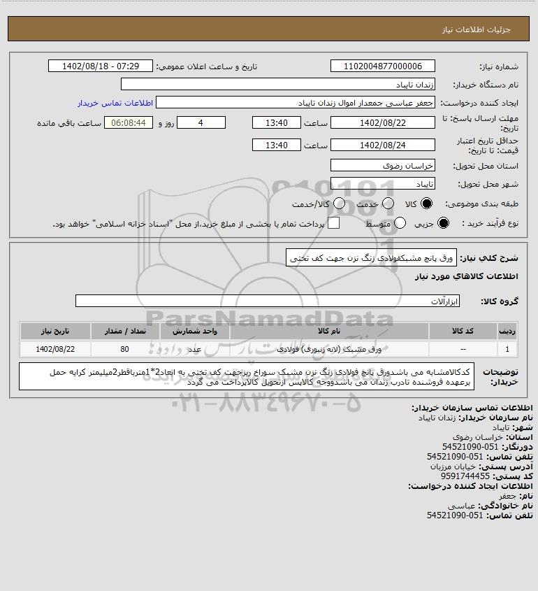 شرح کلی نیاز: ورق پانچ مشبکقولادی زنگ نزن جهت کف تختی