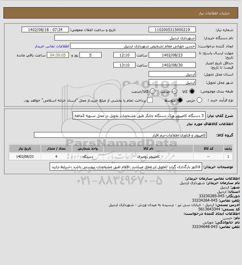 استعلام 3 دستگاه کامپیوتر ویک دستگاه چاپگر طبق مشخصات تحویل در محل تسویه 2ماهه, استعلام 3 دستگاه کامپیوتر ویک دستگاه چاپگر طبق مشخصات تحویل در محل تسویه 2ماهه