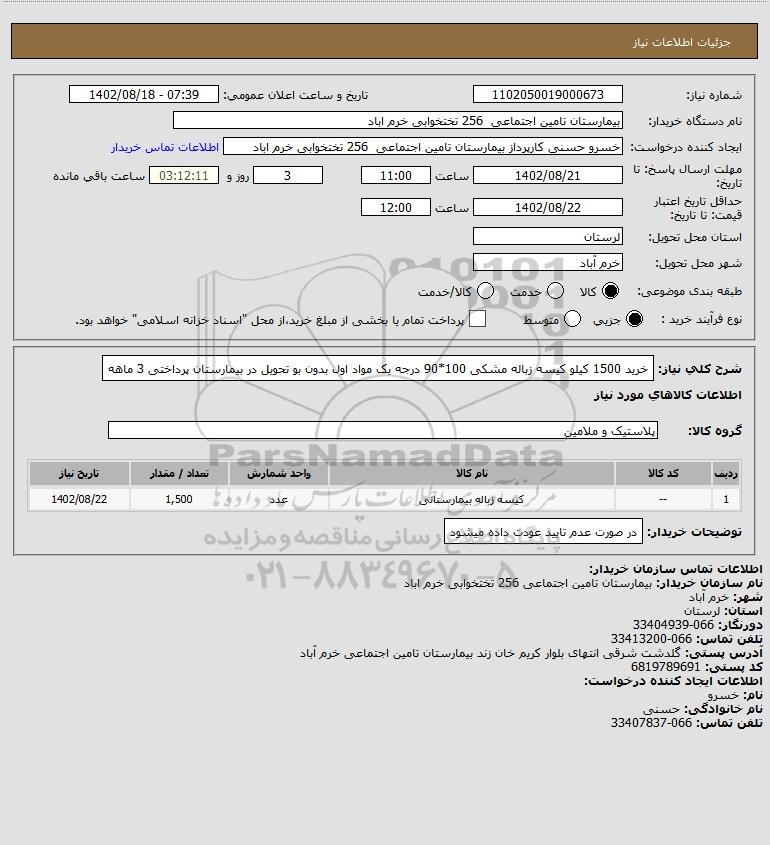 | 1 | -- | کیسه زباله بیمارستانی | عدد | 1,500 | 1402/08/22 |
