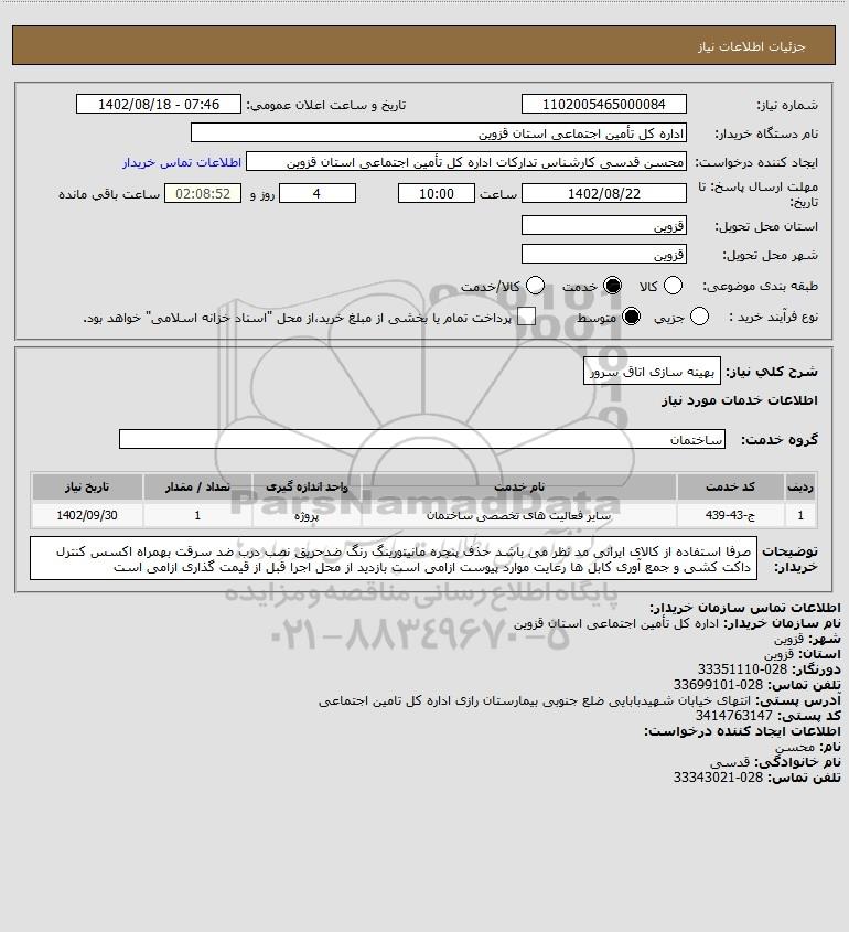نام دستگاه خریدار:اداره کل تأمین اجتماعی استان قزوین