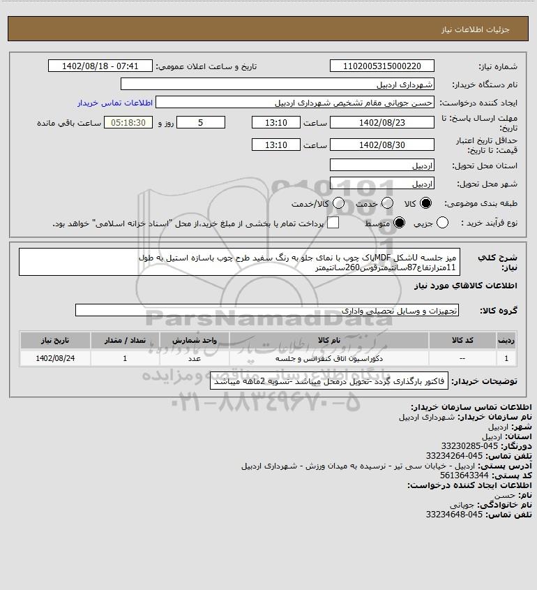 نام دستگاه خریدار:شهرداری اردبیل