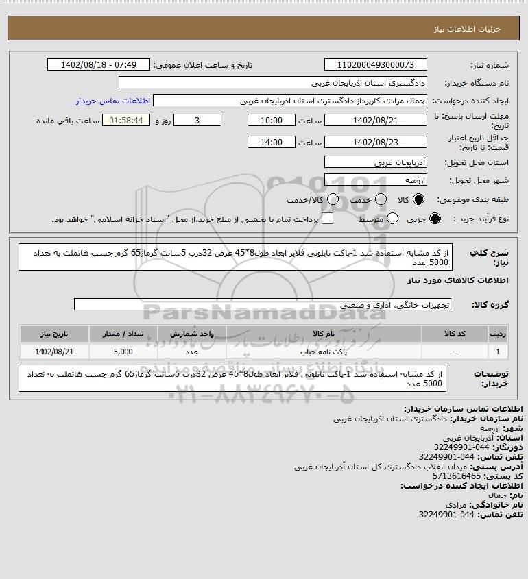 نام دستگاه خریدار:دادگستری استان اذربایجان غربی