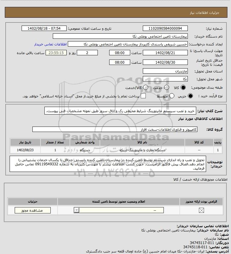 نام سازمان خریدار: بیمارستان تامین اجتماعی بوعلی نکا