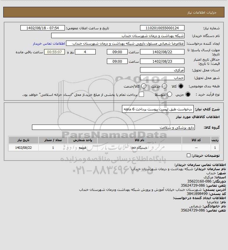 شرح کلی نیاز: درخواست طبق لیست پیوست پرداخت 6 ماهه