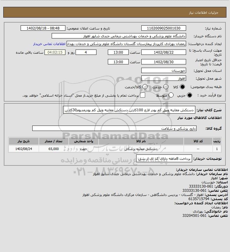 نام دستگاه خریدار:دانشگاه علوم پزشکی و خدمات بهداشتی درمانی جندی شاپور اهواز