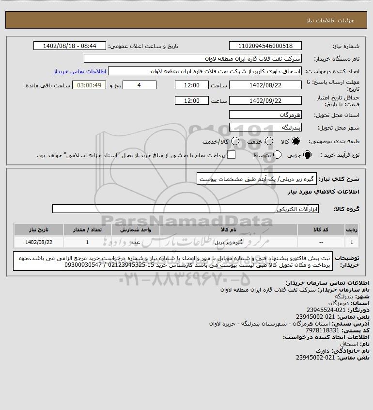 نام سازمان خریدار: شرکت نفت فلات قاره ایران منطقه لاوان