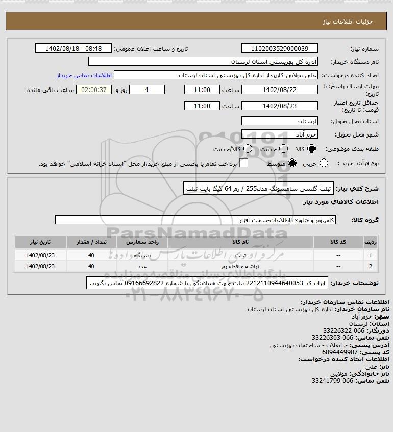 نام دستگاه خریدار:اداره کل بهزیستی استان لرستان