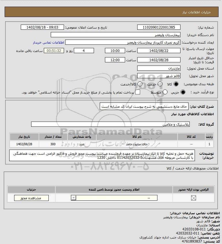 نام دستگاه خریدار:بیمارستان ولیعصر