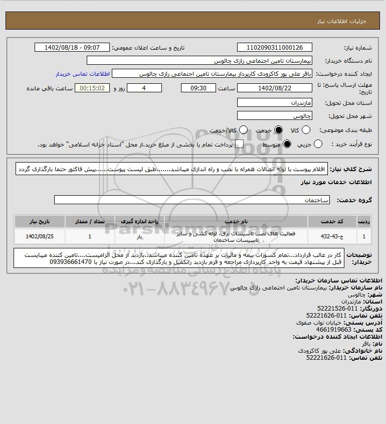 نام دستگاه خریدار:بیمارستان تامین اجتماعی رازی چالوس