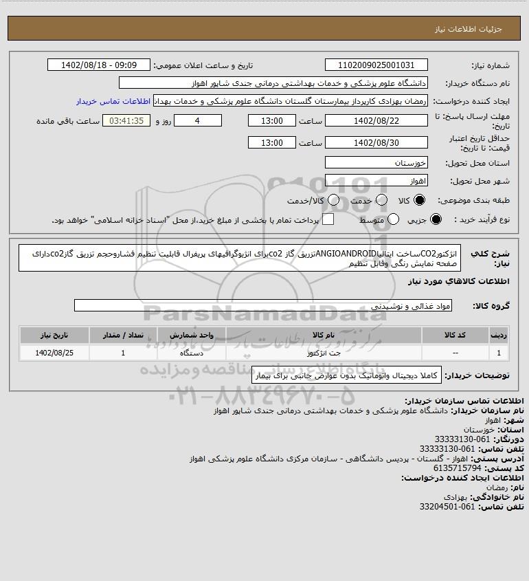 نام دستگاه خریدار:دانشگاه علوم پزشکی و خدمات بهداشتی درمانی جندی شاپور اهواز