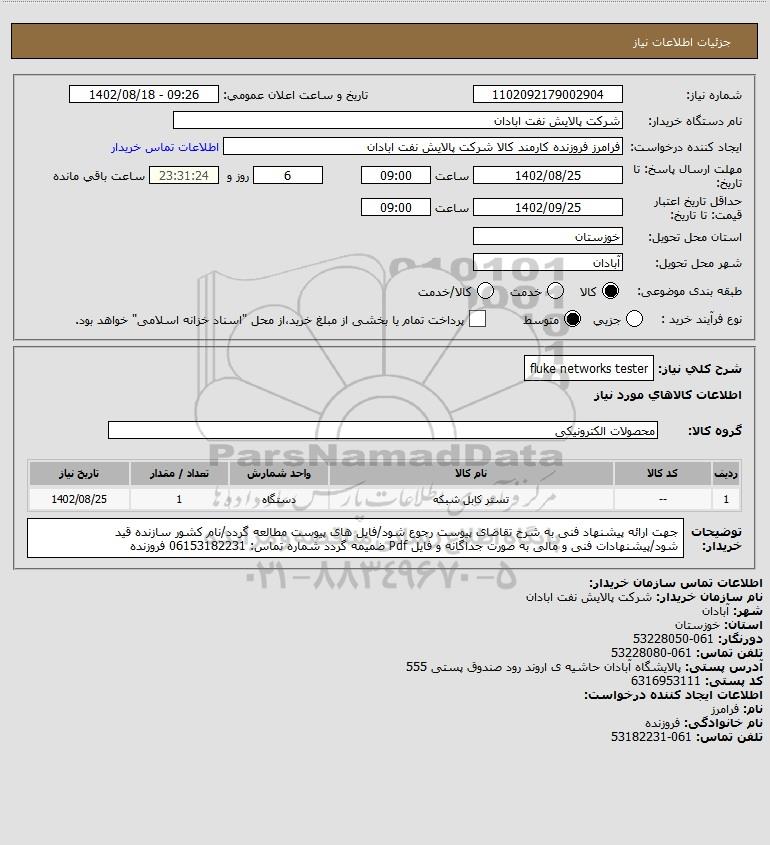 | 1 | -- | تستر کابل شبکه | دستگاه | 1 | 1402/08/25 |