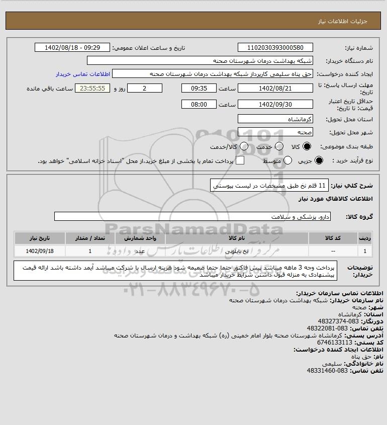 نام دستگاه خریدار:شبکه بهداشت درمان شهرستان صحنه