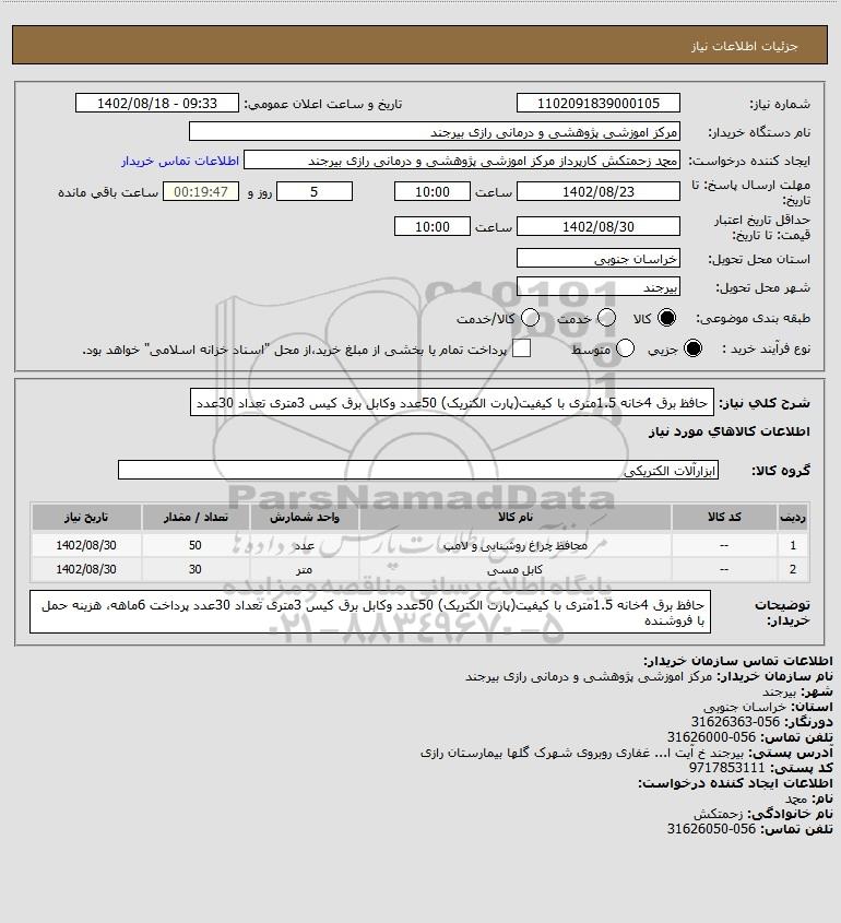 استعلام حافظ برق 4خانه 1.5متری با کیفیت(پارت الکتریک) 50عدد وکابل برق کیس 3متری تعداد 30عدد, استعلام حافظ برق 4خانه 1.5متری با کیفیت(پارت الکتریک) 50عدد وکابل برق کیس 3متری تعداد 30عدد