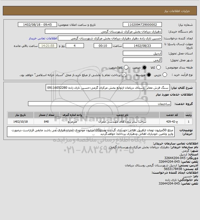 نام دستگاه خریدار:دهیاری دریامان بخش مرکزی شهرستان گرمی