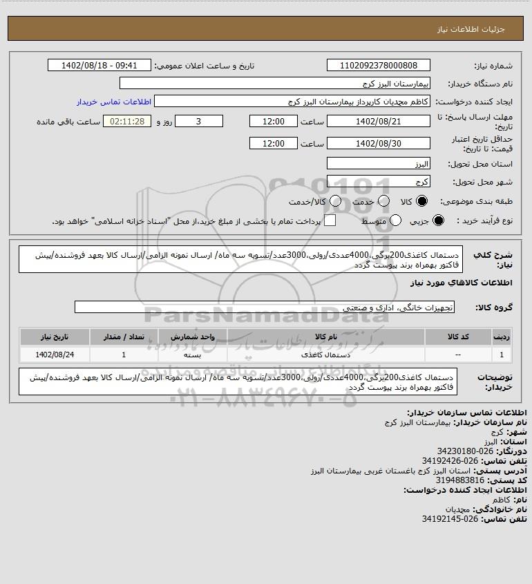 نام دستگاه خریدار:بیمارستان البرز کرج