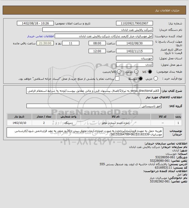 شرح کلی نیاز: 3قلم servo directional به تیراژ2/الصاق پیشنهاد فنی و مالی مطابق پیوست/توجه به شرایط استعلام الزامی