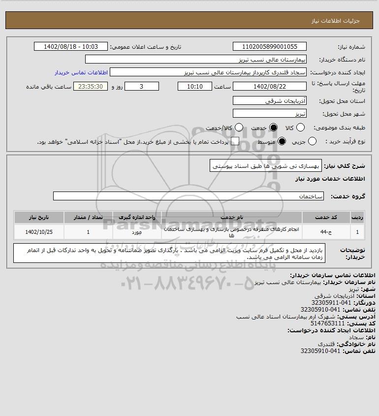 نام سازمان خریدار: بیمارستان عالی نسب تبریز