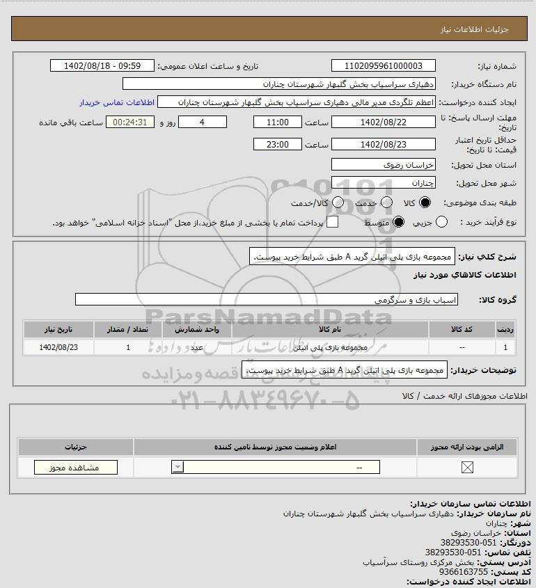 شرح کلی نیاز: مجموعه بازی پلی اتیلن گرید A طبق شرایط خرید پیوست.