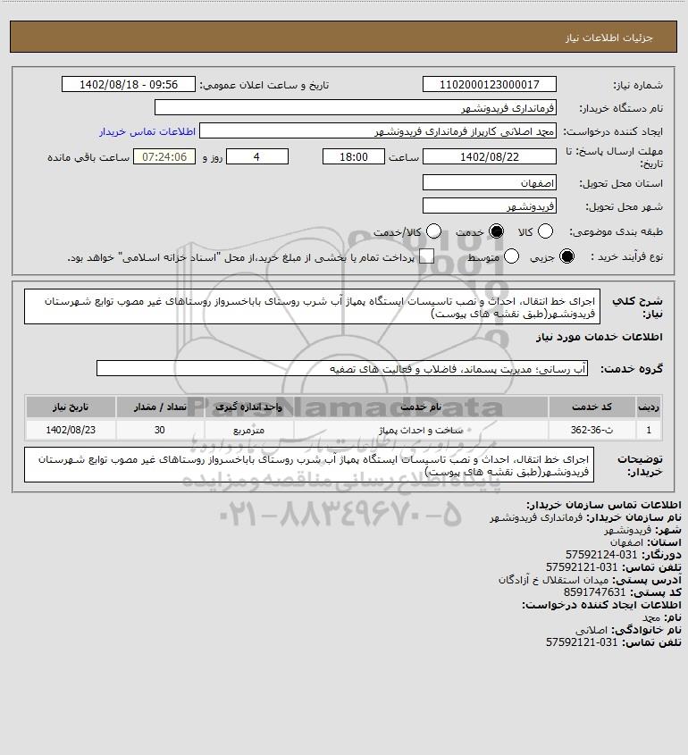 نام دستگاه خریدار:فرمانداری فریدونشهر