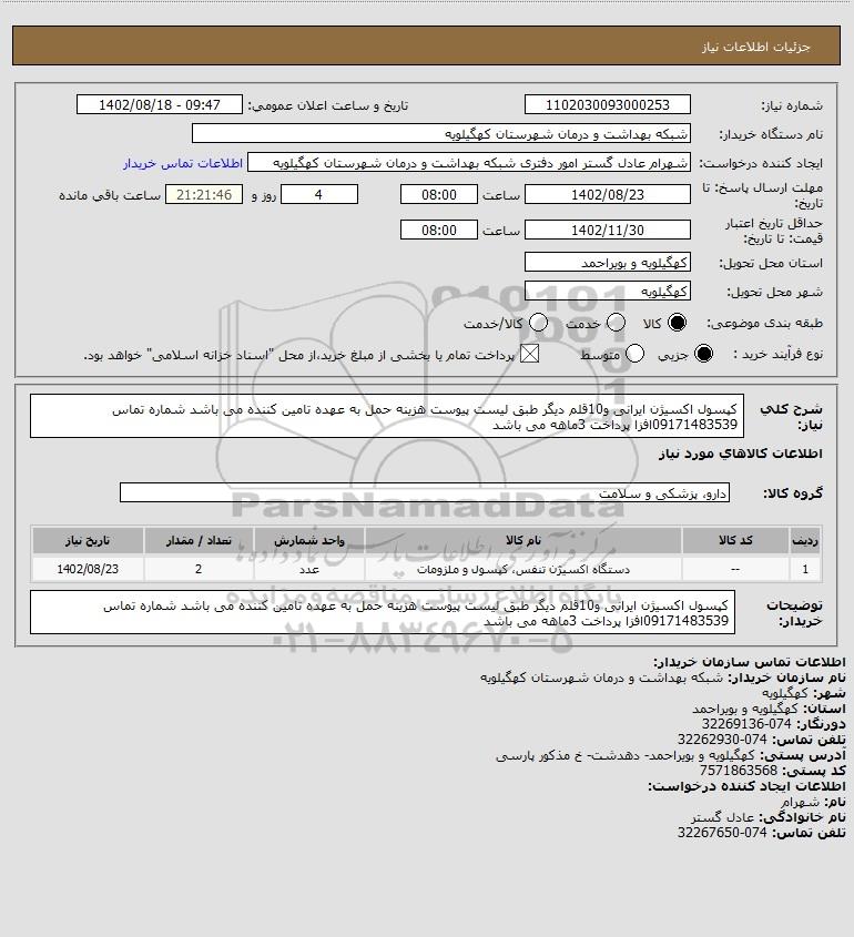 نام دستگاه خریدار:شبکه بهداشت و درمان شهرستان کهگیلویه