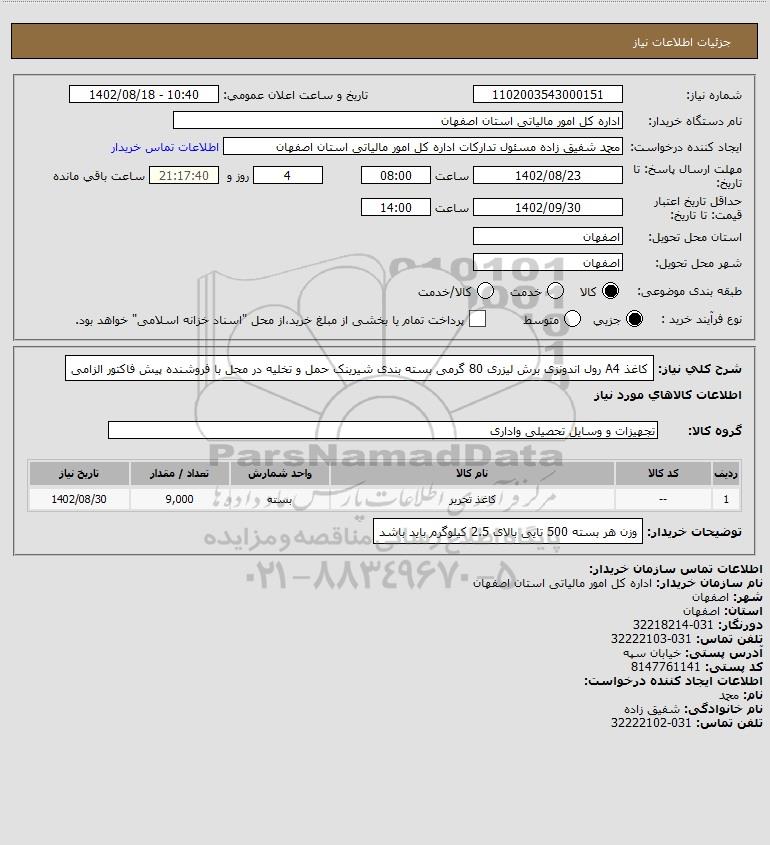 نام دستگاه خریدار:اداره کل امور مالیاتی استان اصفهان