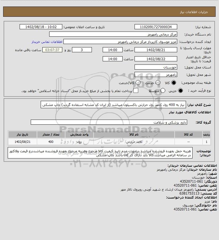نام دستگاه خریدار:مرکز درمانی رامهرمز