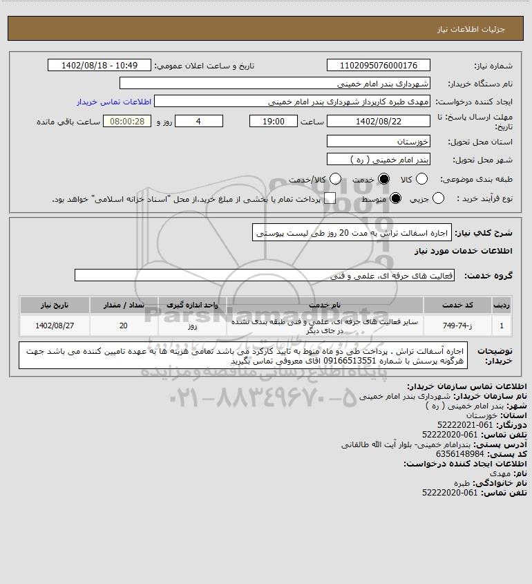 نام دستگاه خریدار:شهرداری بندر امام خمینی