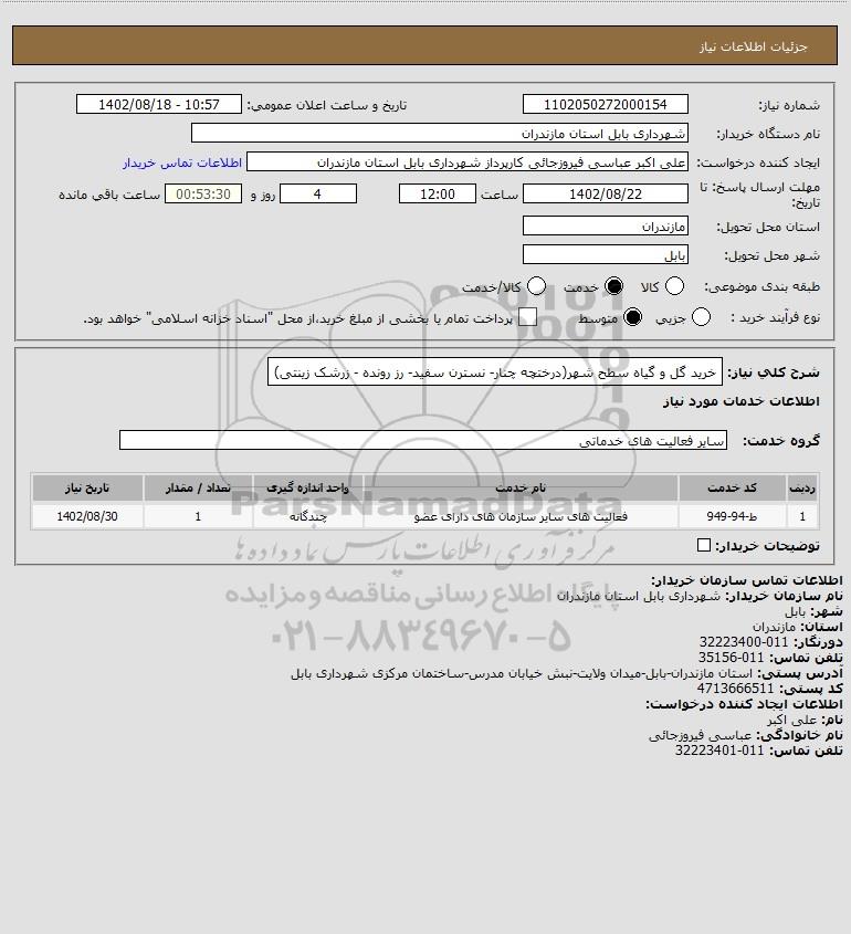 نام دستگاه خریدار:شهرداری بابل استان مازندران