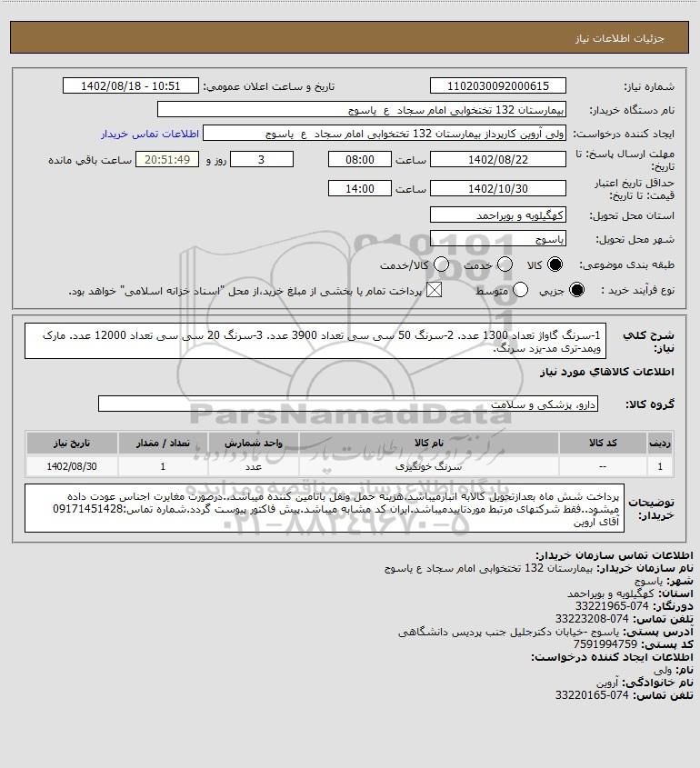 نام سازمان خریدار: بیمارستان 132 تختخوابی امام سجاد ع یاسوج