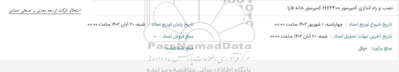 تاریخ پایان توزیع اسناد: شنبه، 20 آبان 1402 ساعت 00:00