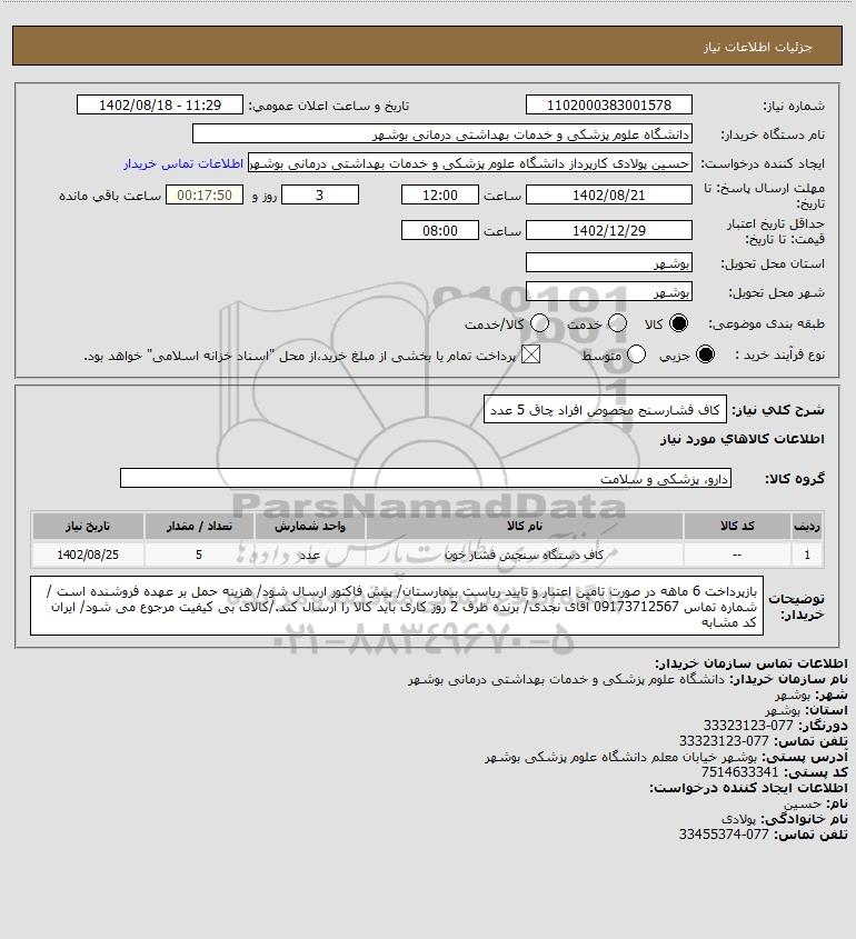 شرح کلی نیاز: کاف فشارسنج مخصوص افراد چاق 5 عدد