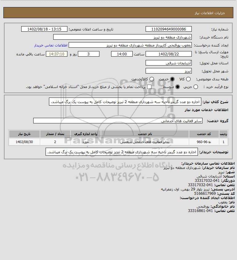 نام سازمان خریدار: شهرداری منطقه دو تبریز