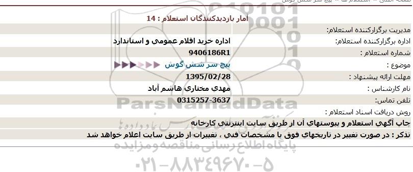 اداره برگزارکننده استعلام: اداره خرید اقلام عمومی و استاندارد
