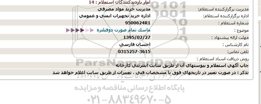 اداره برگزارکننده استعلام: اداره خرید تجهیزات ایمنی و عمومی