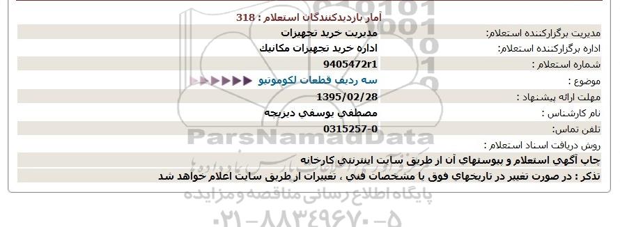 استعلام سه ردیف قطعات لكوموتیو , استعلام ،استعلام سه ردیف قطعات لكوموتیو