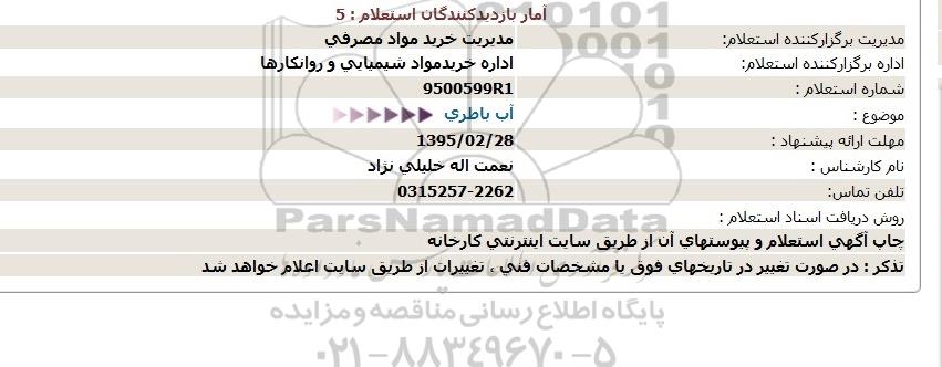 اداره برگزارکننده استعلام: اداره خرید مواد شیمیایی و روانکارها