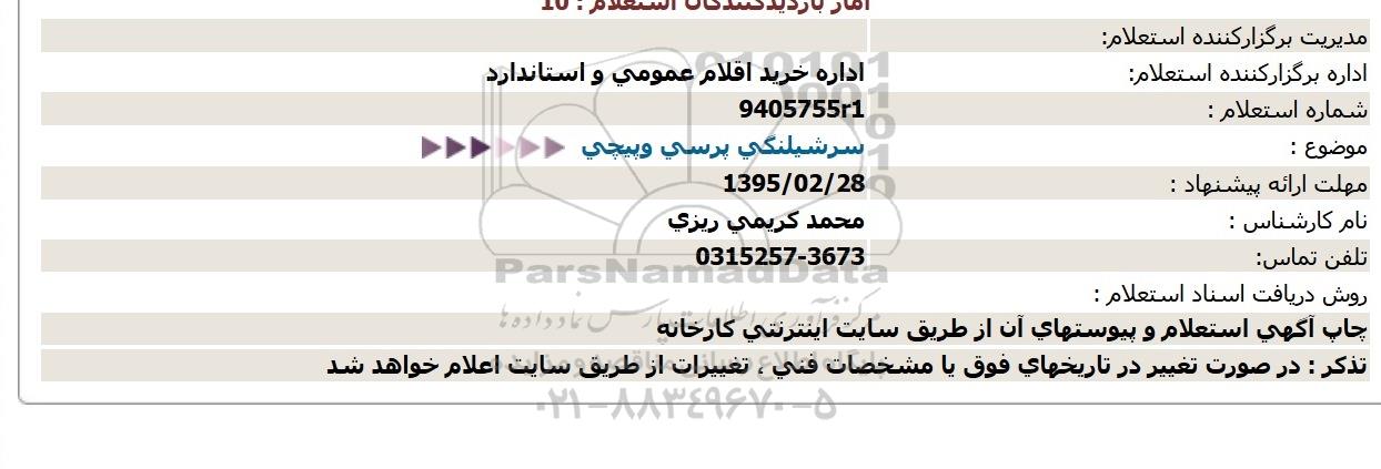 اداره برگزارکننده استعلام: اداره خرید اقلام عمومی و استاندارد