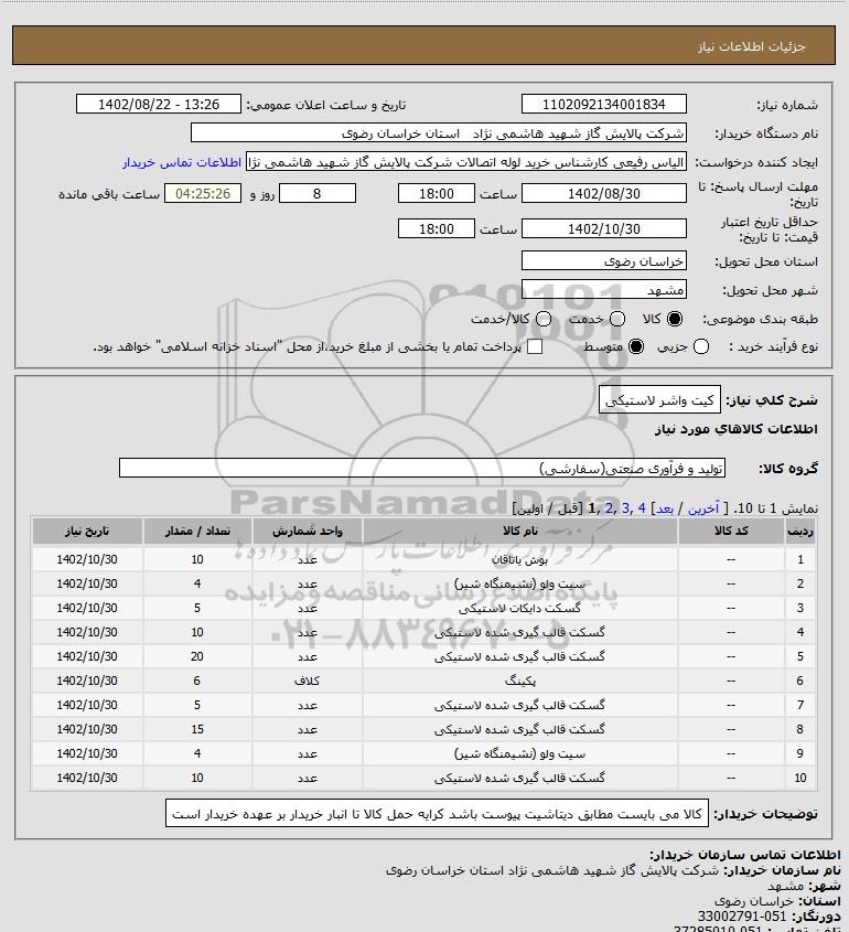 نام دستگاه خریدار:شرکت پالایش گاز شهید هاشمی نژاد استان خراسان رضوی
