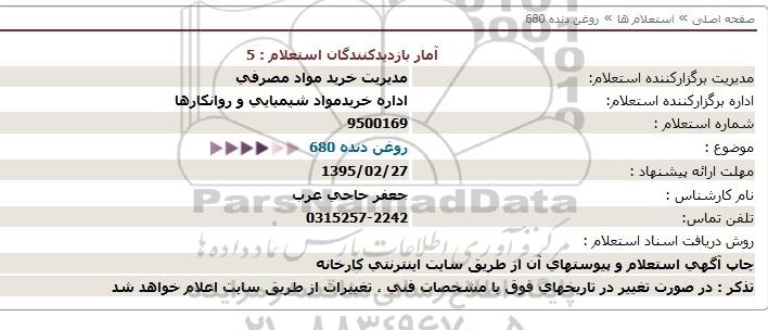 اداره برگزارکننده استعلام: اداره خریدمواد شیمیایی و روانکارها