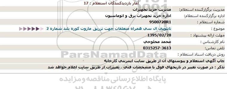 اداره برگزارکننده استعلام: اداره خرید تجهیزات برق و اتوماسیون