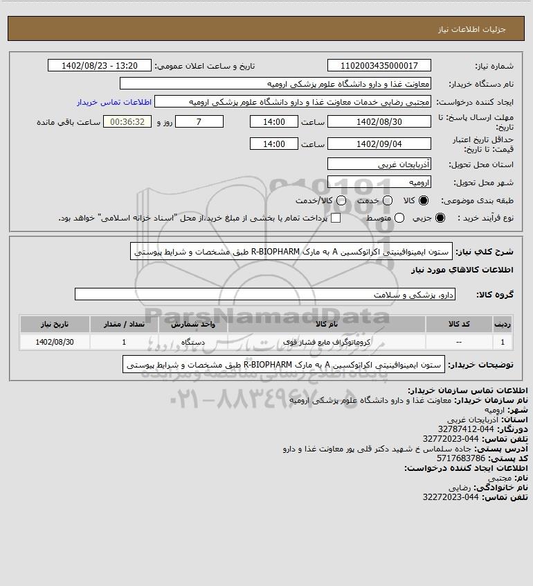 نام دستگاه خریدار:معاونت غذا و دارو دانشگاه علوم پزشکی ارومیه