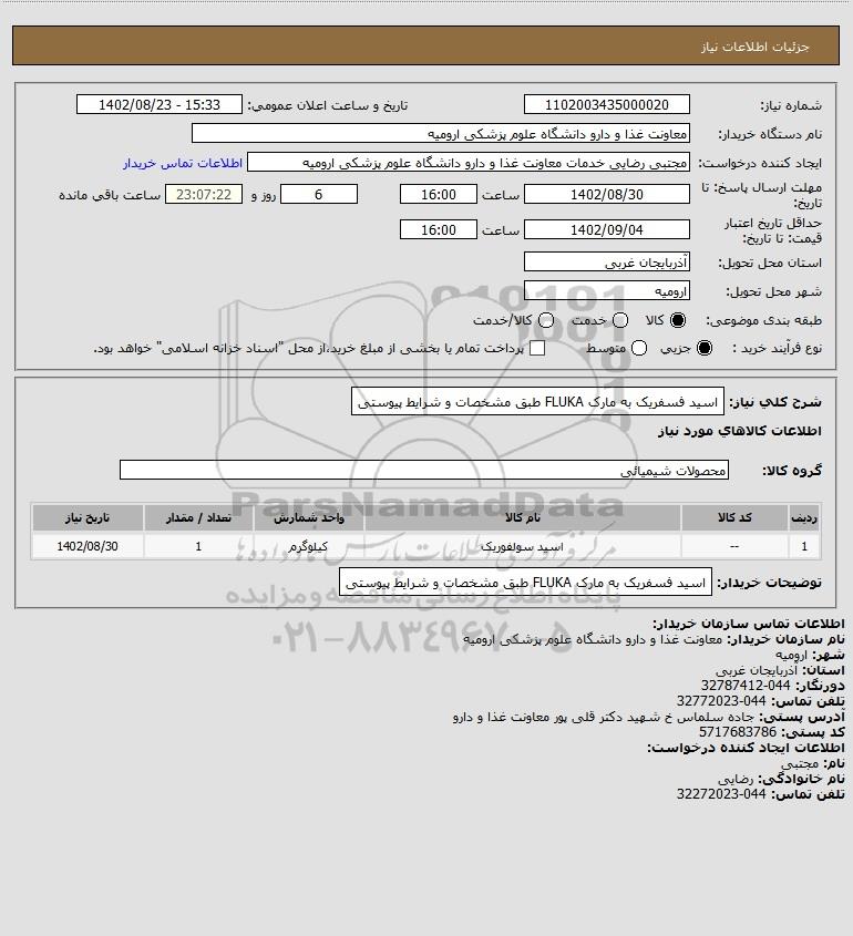 نام دستگاه خریدار:معاونت غذا و دارو دانشگاه علوم پزشکی ارومیه