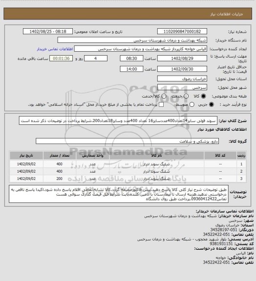 نام دستگاه خریدار:شبکه بهداشت و درمان شهرستان سرخس